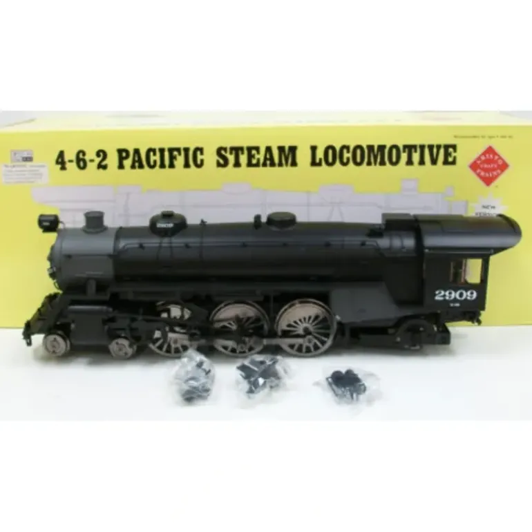 PACIFIC 4-6-2 STEAM LOCOMOTIVE (ART-21400 Series) FEATURES -NEW & UPGRADED: – All new motor block – Can Motor Drive with Built In Cooling Fan – All Drive Axles Gear Driven – 3 Patent Ball Bearing Equipped Prime Mover Gearboxes – 2 Flywheels For Better Locomotive Performance – Blackened cast metal drive wheels – Blackened cast metal main drive rods – Modular PC Board with plug & play capabilities – Sound, Battery, DCC & RCC Ready – Plugs for Battery Operation – Either Long or Vanderbilt Tender Depending on Prototype – Patented Smoke Unit with burnout protection (SD-45 type) under Smoke Stack – Factory-installed speaker for optional after-market sound unit (in tender) – Operating Marker / Classification Lights – Operating Knuckle Coupler (on Tender rear) – Mounting Bracket for Knuckle Coupler (front coupler provided) – Moveable Cab Side Windows – Blackened Solid Brass Grab Railings – Boiler and Cab Detail – Separate Details Including Bell, Whistle, Headlight, and Domes – Excellent Painting and Lettering – Extra weight for Extra Pulling Power