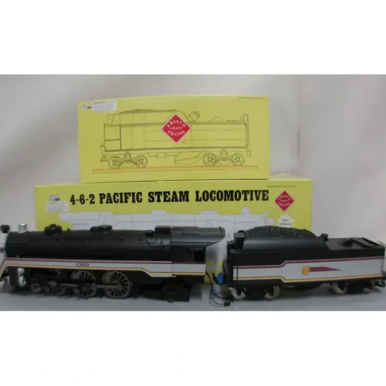 PACIFIC 4-6-2 STEAM LOCOMOTIVE (ART-21400 Series) FEATURES -NEW & UPGRADED: – All new motor block – Can Motor Drive with Built In Cooling Fan – All Drive Axles Gear Driven – 3 Patent Ball Bearing Equipped Prime Mover Gearboxes – 2 Flywheels For Better Locomotive Performance – Blackened cast metal drive wheels – Blackened cast metal main drive rods – Modular PC Board with plug & play capabilities – Sound, Battery, DCC & RCC Ready – Plugs for Battery Operation – Either Long or Vanderbilt Tender Depending on Prototype – Patented Smoke Unit with burnout protection (SD-45 type) under Smoke Stack – Factory-installed speaker for optional after-market sound unit (in tender) – Operating Marker / Classification Lights – Operating Knuckle Coupler (on Tender rear) – Mounting Bracket for Knuckle Coupler (front coupler provided) – Moveable Cab Side Windows – Blackened Solid Brass Grab Railings – Boiler and Cab Detail – Separate Details Including Bell, Whistle, Headlight, and Domes – Excellent Painting and Lettering – Extra weight for Extra Pulling Power