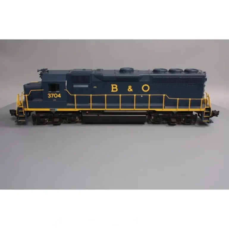 Here is an Aristo-Craft 23501 G Scale B&O GP-40 Diesel Locomotive #3704. This features plastic construction, metal wheels, couplers, motor, lighting. Please see my pictures for additional features.