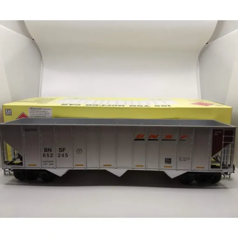 Here is an Aristo-Craft 41489PC-C G Scale BNSF 3-Bay 100 Ton Coal Hopper #652245. Features Include: plastic axles, wheels, and knuckle couplers.