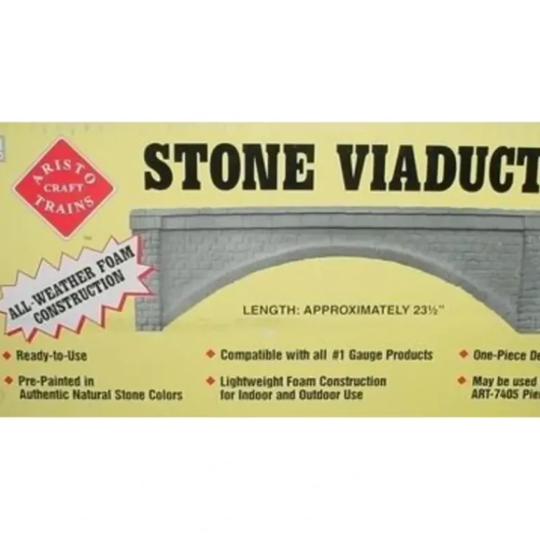 This viaduct is made from lightweight foam construction for indoor and outdoor use. It measures 1/4W x 23 3/4H, ARCH: 3 1/2H.
