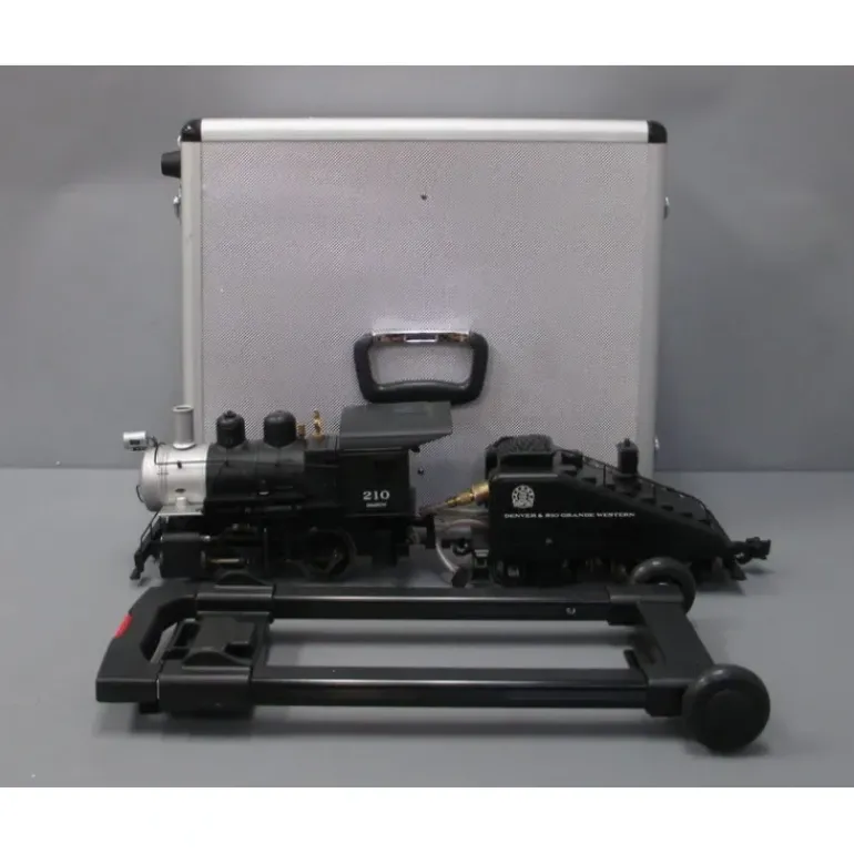 Here is an Aristo-Craft 84203 D&RGW 0-4-0 Live Steam Locomotive & Tender. This item features trucks, metal wheels, and couplers. Please see my pictures for additional features.