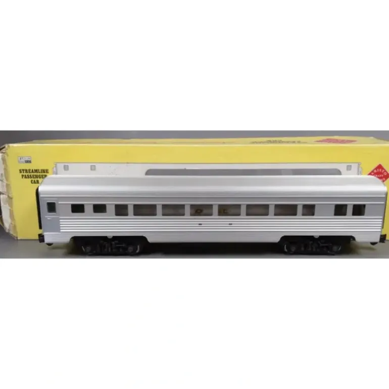Here is a Aristo-Craft G Streamlined Passenger Car. This car features plastic construction, plastic trucks, metal wheels and axles, and knuckle couplers.