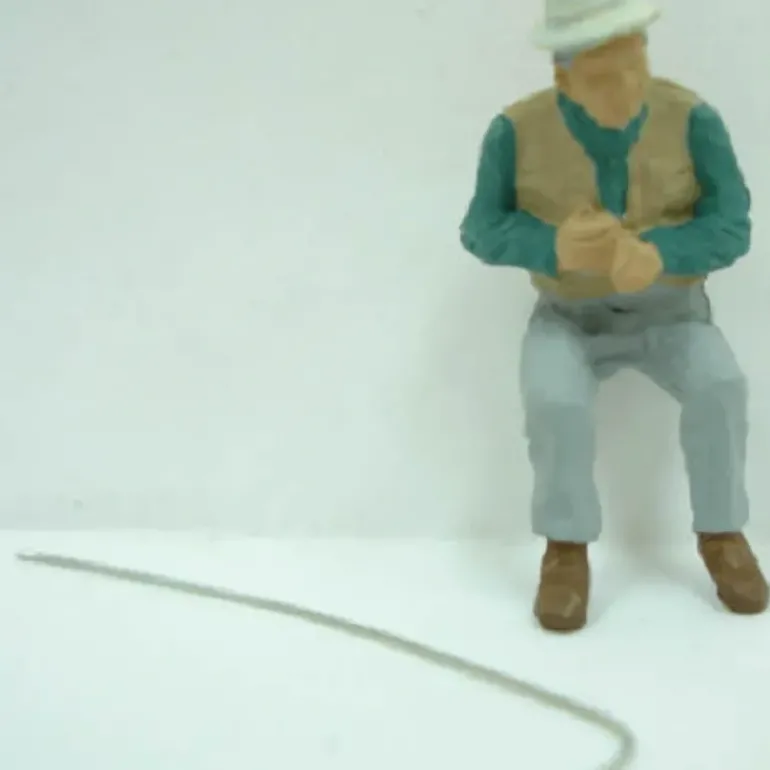 This is an Arttista 1192 Fishing Man Sitting Pewter Figure for O scale layouts.