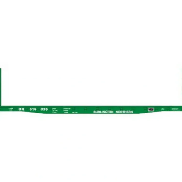 This is an Athearn 10871 N Scale Burlington Northern 53′ Bulkhead Flatcar #616036. Key Features: Fully assembled and ready for your layout,Separately applied brake wheel,Weighted for optimum performance,Screw mounted trucks for accurate tracking,McHenry knuckle couplers installed,Packed in a jewel case.