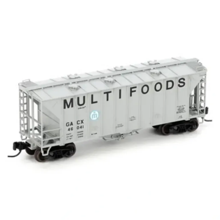 This is an Athearn 23026 N Scale Multifoods GATC 2600 Airslide Hopper #46041. Key Features: Fully assembled and ready for your layout,Photo-etched roof walks,Separately applied wire grab irons and brake piping,Detailed underbody and outlet piping,Razor sharp painting and printing,Roller bearing or friction trucks per prototype,McHenry scale knuckle spring couplers installed.
