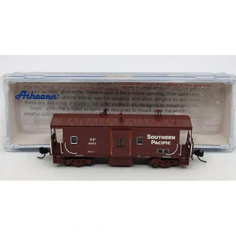 This is an Athearn 23234 N Scale Southern Pacific Bay Window C-50-8 Caboose #4667. Key Features: Fully assembled and ready for your layout,Now packaged in a stackable jewel case,New truck tooling including axle-mounted generator,Fully detailed underbody,Prototypical details like antenna, marker lights, smoke jack and vent,Separately applied wire grab irons,End walkway tread,Clear window glazing,McHenry scale knuckle spring couplers installed.