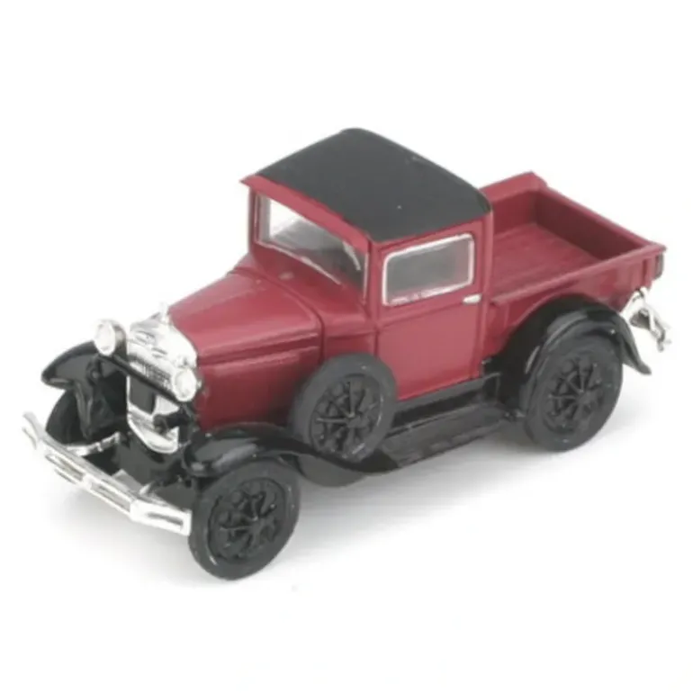 This is an Athearn 26421 HO Ford Model A Pickup RTR (Burgundy). Features: Ford licensed model, factory assembled with detail parts applied, molded interior with separately applied steering wheel, chromed bumpers and radiator, clear window glazing, rubber whitewall tires (except on pickup).