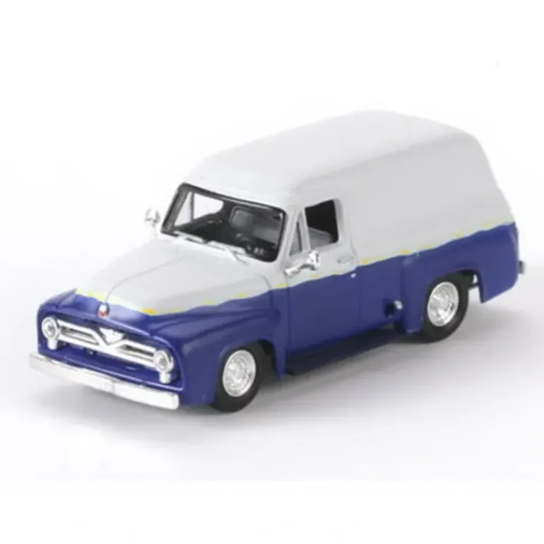This is an Athearn 26496 HO Scale 1955 Ford F-100 Panel Truck, White/Blue.