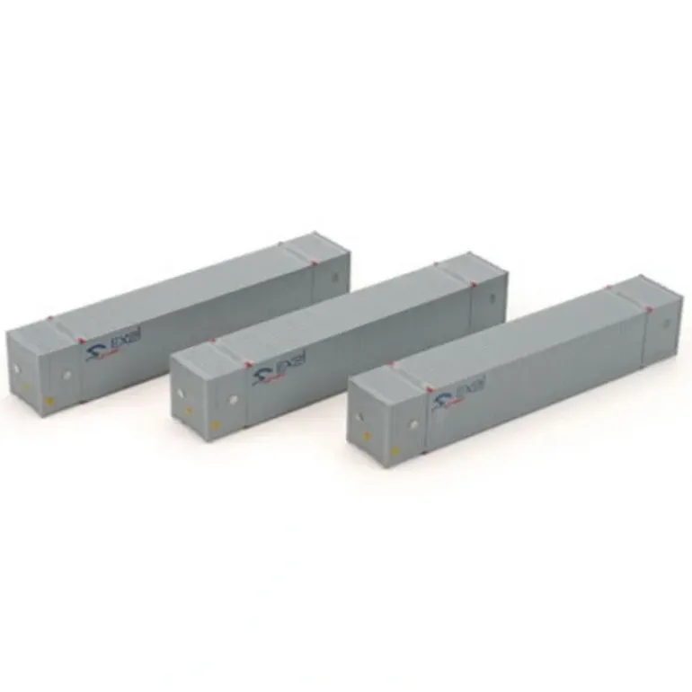 These containers are fully assembled and ready for your layout. There are three included in each package. They feature horizontal ribbed fronts, easy stackability, separately applied door closure rods, individual numbering, and razor sharp painting and printing.