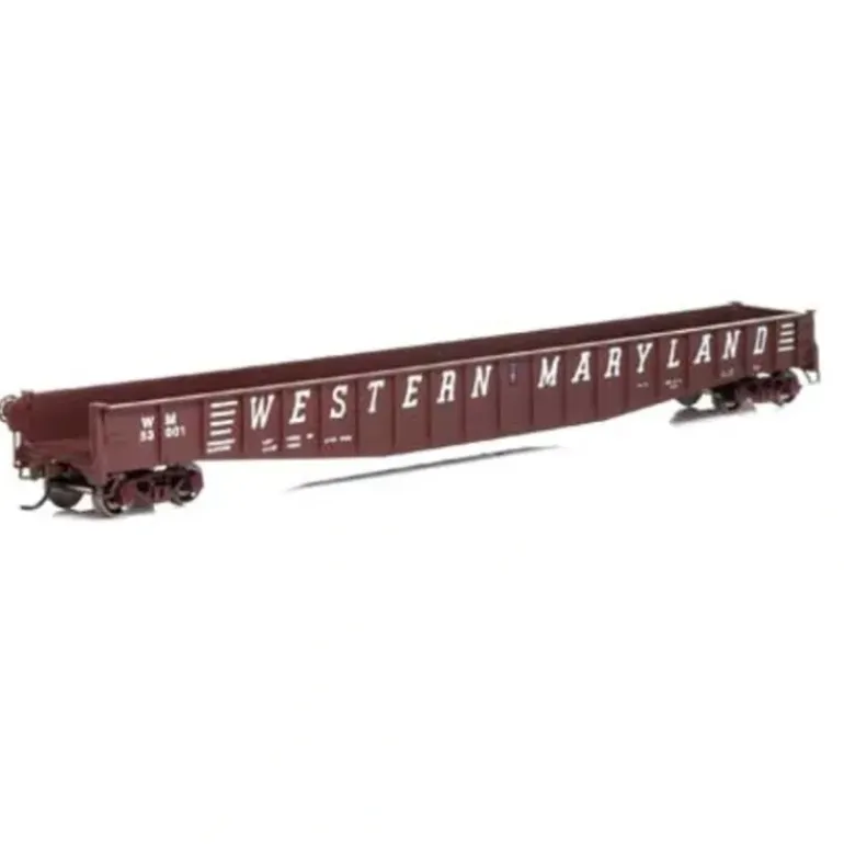 This is an Athearn 28222 HO Western Maryland 65′ 6 Mill Gondola Ready-To-Run #53001. Features: Decorated models fully-assembled and ready to run out of the box, Highly-detailed, injection-molded body, Separately applied wire grab irons, Working drop ends. Gently lift up & push inward to fold ends down, Interior detailing, Weighted for trouble free operation, Machined metal wheels and RP25 contours operate on all popular brands of track, Body mounted McHenry operating scale knuckle couplers, Window packaging for easy viewing plus interior plastic blister safely holds the model for convenient storage, Replacement parts available, Minimum radius: 18.