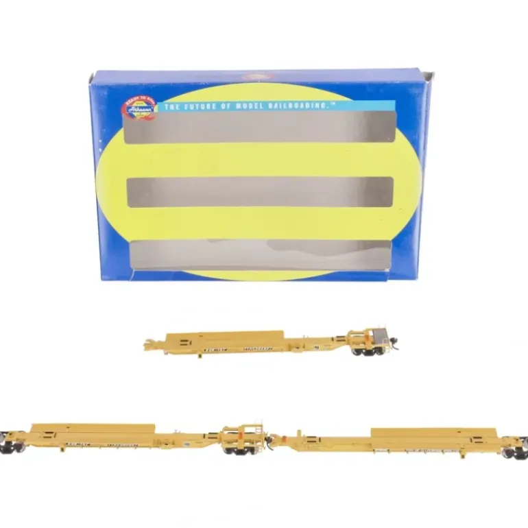 Intermodal transportation requires specialized rail equipment which is, on occasion, too specialized. To allow more flexibility in loading containers and trailers at terminals all-purpose spine cars were developed. These cars can be configured to allow loading of trailers of varying lengths, from 28′ pups to 53′ high capacity units. With the trailer hitches collapsed containers can also be loaded. 40′, 45′ 48′ and 53′ containers call all be accommodated on these cars as well as 20′ models provided they are mounted to a chassis. The prototype for our model is based on a Trinity-built car owned by the TTX Company. These 70-ton cars (TTX class RAF30A) numbered TTRX 360817-361116 first appeared on the rails in the late 1990’s. The Athearn model is faithful to the prototype allowing modelers to load a variety of trailers and containers. These cars are fully assembled and are ready for your layout. They feature all new super-details, precision die-cast metal spine structure, etched metal walkways, separately applied brake piping, fine ladder detail, weighted for optimal performance and McHenry knuckle spring couplers.