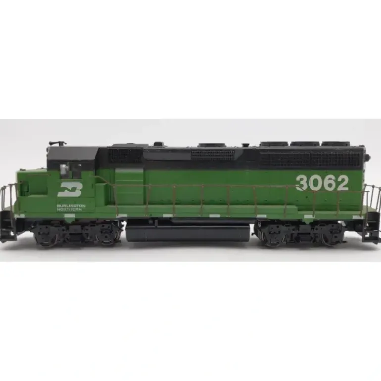 Here is an Athearn 4709 HO Scale Burlington Northern GP40-2 Powered Diesel Locomotive #3062. This locomotive features plastic construction, plastic trucks, metal wheels, axles and motor.