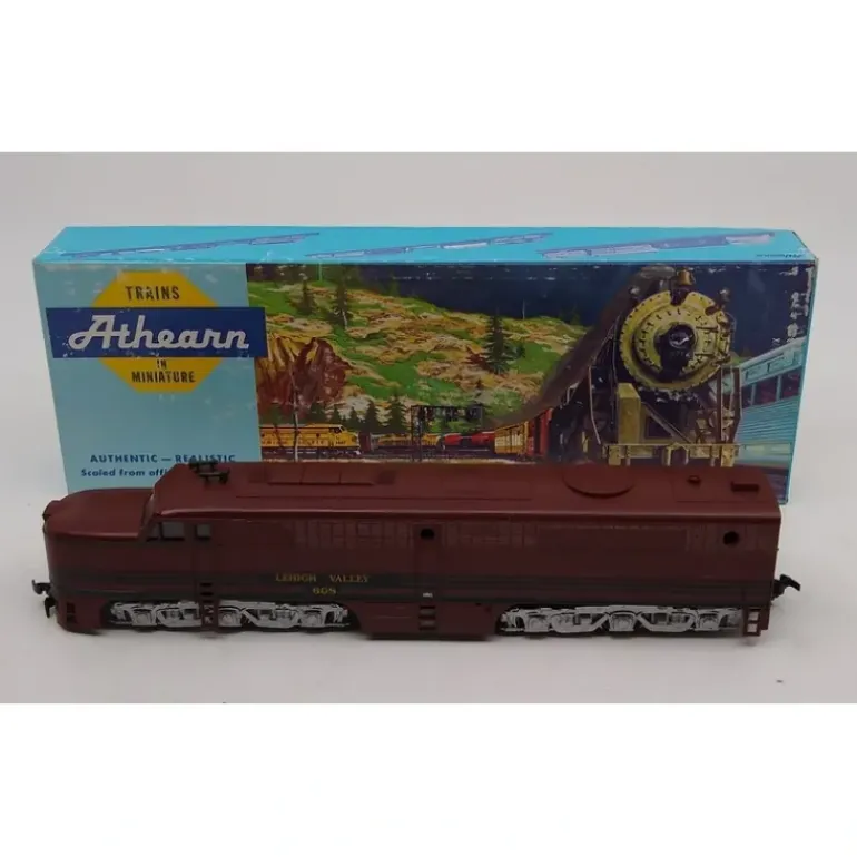 Here is an Athearn 608 PA-1 Lehigh Valley Powered Diesel. It features a powerful motor, die-cast chassis, operating knuckle couplers, metal trucks, wheels and axles, a working headlight and detailed plastic body. Road number 608.