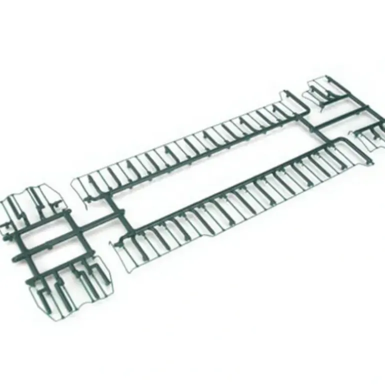 This is a Burlington Northern powered diesel locomotive that features a plastic shell, plastic truck side, metal wheels, a decorative horn, headlight and metal handrails.