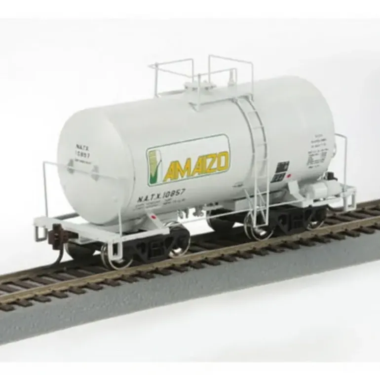 Here is a Athearn 89108 HO Scale NATX-Amaizo NACC 8k “Beer Can” Tank Car #10857. This tank car is fully assembled and ready for your layout. This tank car features photo-etched platforms, wire grab irons, machined RP25 profile metal wheels, and it is equipped with McHenry AAr upper/lower shelp couplers as applicable and it has been weighted for optimal performance.