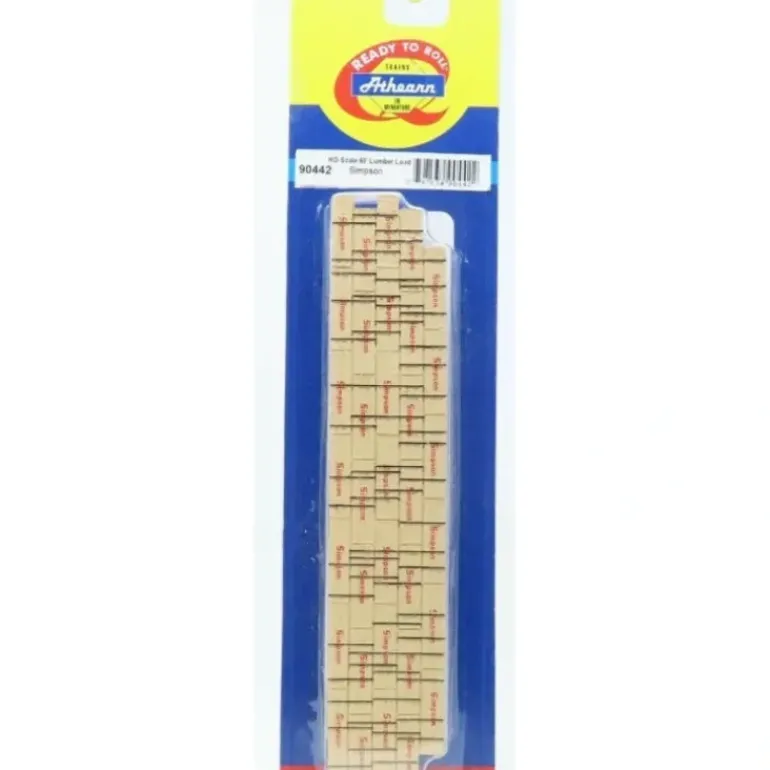 This is an Athearn 90442 HO 60′ Lumber Load Flat Simpson.
