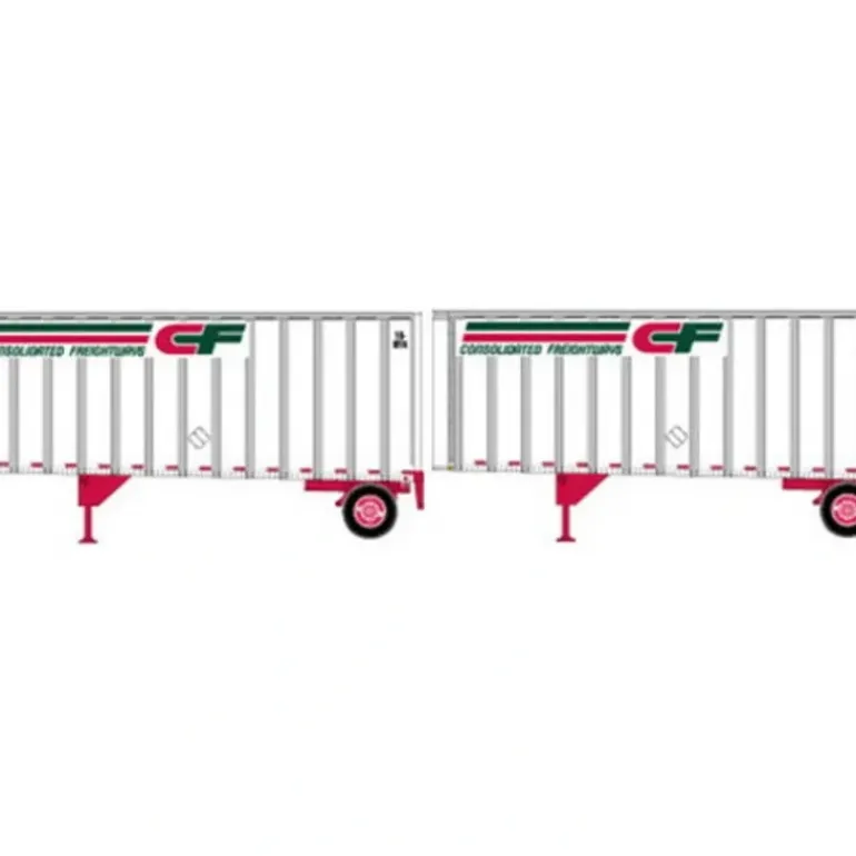 These trailers are fully assembled and ready for your layout. There are two trailers in each package. They feature plastic construction and razor sharp painting and printing.