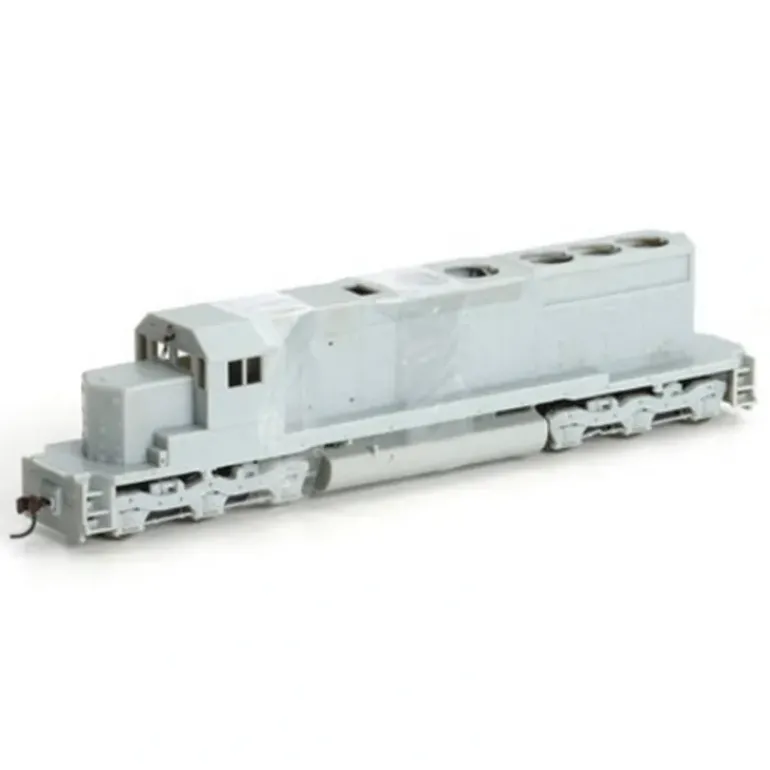 Here is an Athearn 93540 HO Undecorated SD40 Diesel Locomotive. This locomotive comes fully assembled and ready for your layout. It features factory installed wire grab irons, factory installed Celcon handrails, detailed fuel tank with correct capacity, see-through fans, available with and without dynamic brakes as appropriate, DCC ready wiring harness installed, directional headlights, machined RP25 profile metal wheels, McHenry scale knuckle spring couplers.