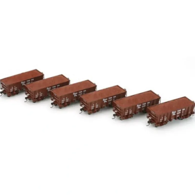 This is an Athearn 94944 HO Southern Pacific 26′ Lo-Side Ore Car W/Loads (Set of 6).
