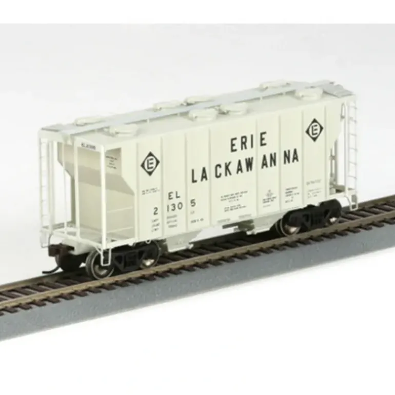This hopper is fully assembled and ready for your layout. It features photo-etched roof walks, factory installed wire grab irons, roof hatches matched to prototype cars, machined RP25 profile metal wheels, McHenry scale knuckle spring couplers, and it is