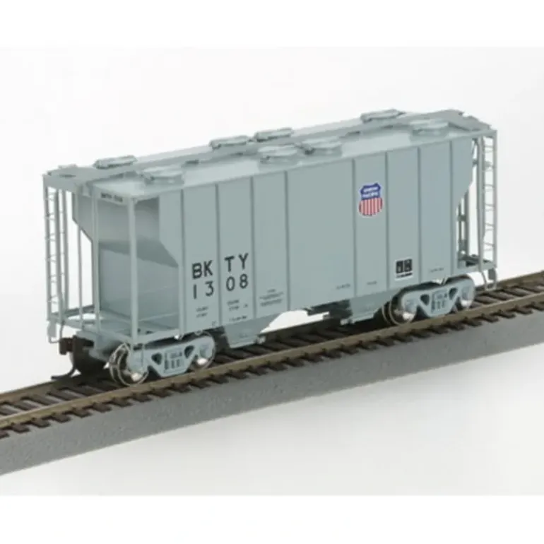 This hopper is fully assembled and ready for your layout. It features photo-etched roof walks, factory installed wire grab irons, roof hatches matched to prototype cars, machined RP25 profile metal wheels, McHenry scale knuckle spring couplers, and it is
