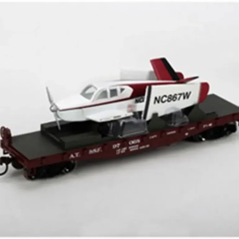 Here is an Athearn 96325 HO Atchison Topeka Santa Fe 40′ Flat w/Red Plane #97068. This car features durable plastic construction, operating couplers, attractive decoration and intricately realistic details.