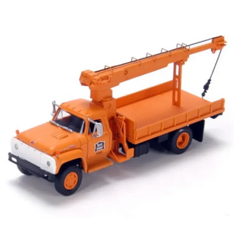 This vehicle is Ford licensed. It features factory assembly with detail parts applied, molded cab interior with separately applied steering wheel, positionable boom, outriggers can be modeled in the raised or lowered position, clear window glazing, and ru