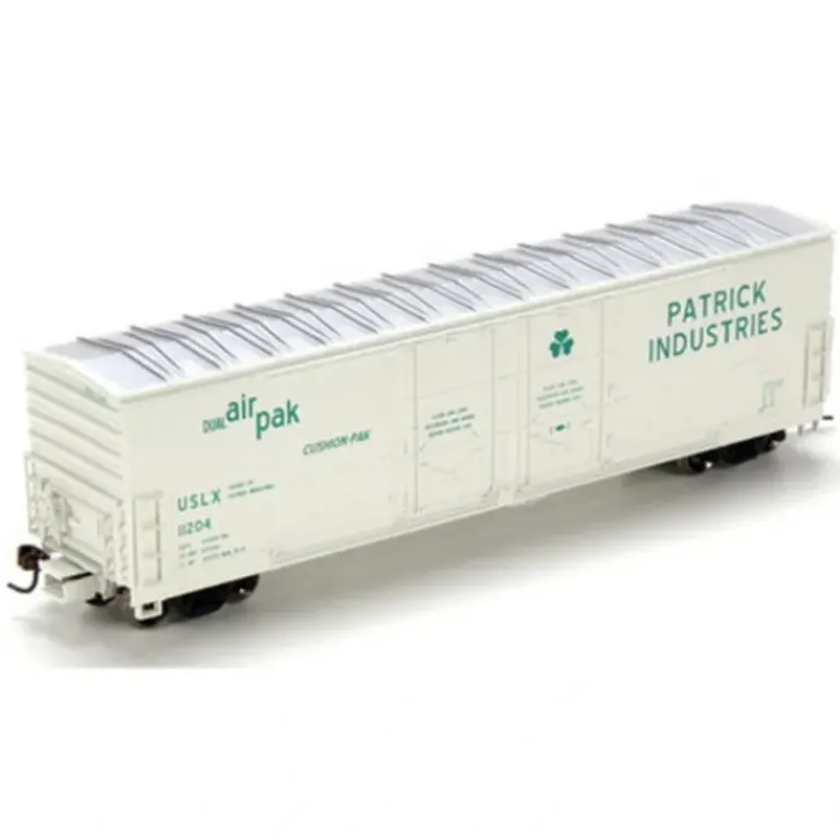 This is an Athearn 96907 HO Patrick Industries 50′ Double Plug Door Boxcar # 11204.