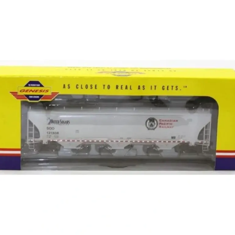 Here is am Athearn G4264 HO SOO/Canadian Pacific Covered Hopper Car #121838. This product features a plastic construction, metal wheels and operating kadee couplers.