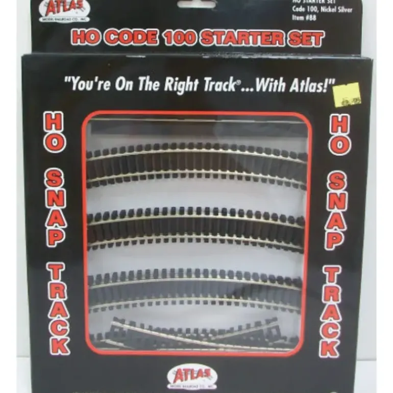 Features black ties and nickel silver rails. For HO scale Code 100 track. Contains 22 sections of curved and straight track, rerailer, and a pair of switches.