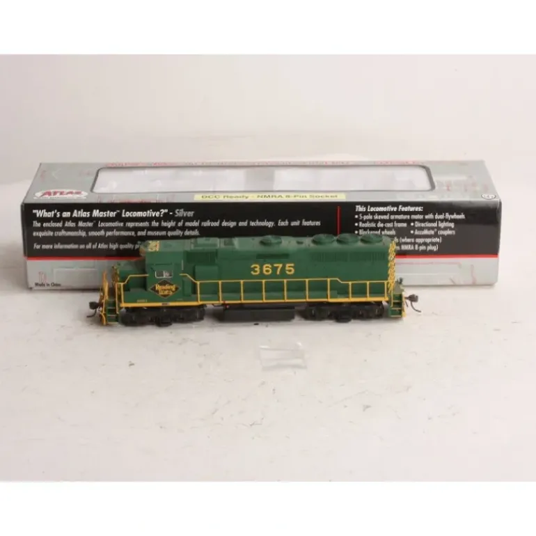 This locomotive features golden white LEDs, realistic die-cast underframe, five pole skewed armature motor with dual flywheels for optimum performance at all speeds, directional lighitng, factory equipped with AccuMate knuckle couplers, detailed cab interior with crew, separately installed scale windshield wipers, metal grab irons, and fine scale handrails, movable drop steps, walkway safety tread, coupler cut bars, multiple unit hoses and trainline hoses, and a snowplow.