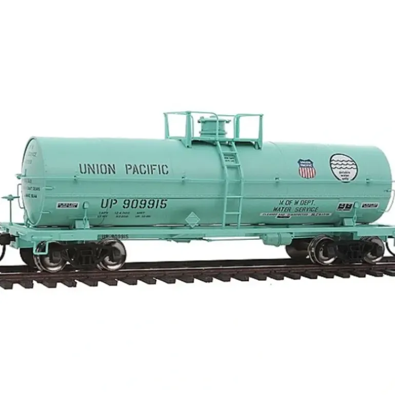 Here is an Atlas 10972 HO Scale Union Pacific ACF 11,000-Gallon Tank #909915. This car features finely molded handrails, tank fittings and safety placards, 50-ton friction bearing trucks with AccuMate couplers, accurate painting and lettering, platforms where appropriate by roadname.