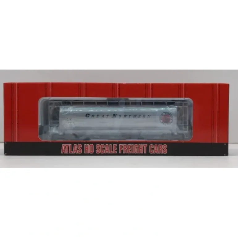 Here is an Atlas 1962-2 HO Scale Great Northern ACF 6-Bay Cylindrical Hopper #71610. This car features plastic trucks, operating knuckle couplers, metal wheels and axles.