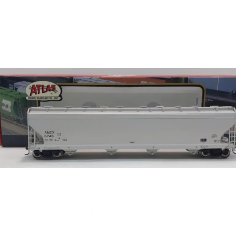 Here is an Atlas 20000433 HO Scale Amoco Chemicals ACF Plastics Hopper Car #6746. This car features a durable plastic construction, metal wheels, plastic axles, plastic trucks & knuckle couplers.