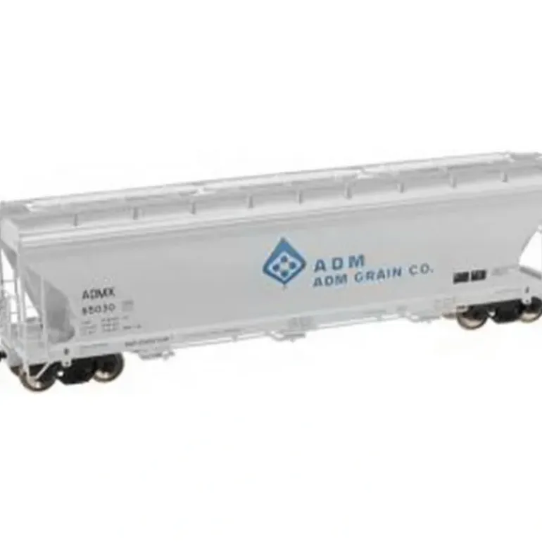 Here is an Atlas 20000623 HO ADM RTR ACF 4650 Centerflow Hopper #65033 This hopper features etched metal roof walks, detailed brake gears, blackened metal wheels, accurate painting and printing, 100-ton roller bearing trucks, body mounted AccuMate couplers, and screw attached coupler pockets.