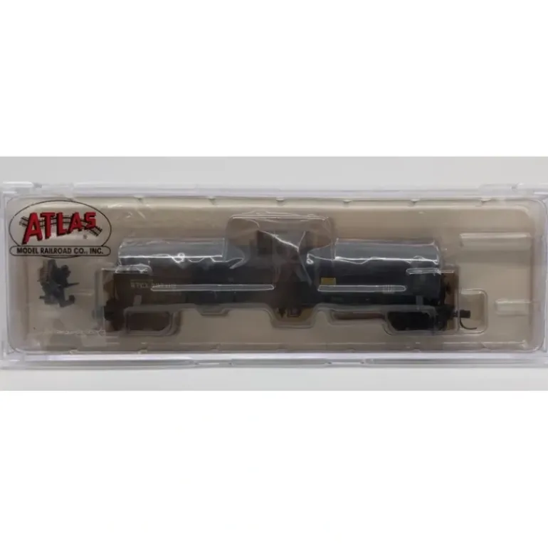 Here is an Atlas 30752 N Scale Republic Car Line 23,500 Gal. Tank Car #237110. This car features plastic trucks, knuckle couplers, wheels and axles. Rapido couplers in box.