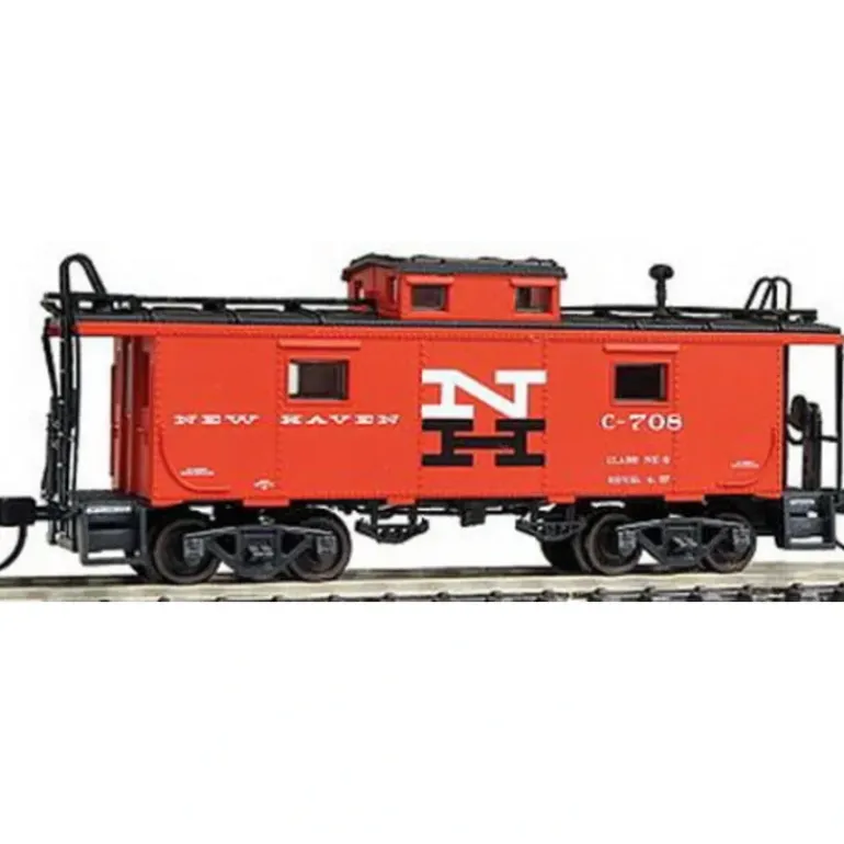 This is Atlas N Scale Ready-to-Run NE-6 Caboose – New Haven #C-708. Features: Finely detailed end rails, smokestack and ladders Brake line detail Weighted chassis Friction-bearing or roller-bearing caboose trucks as appropriate Factory-equipped with AccuMate couplers Accurate painting and printing Railroad specific features. Additional Information: This Atlas N scale model is based upon a standard caboose design of the International Car Company of Kenton, Ohio that was used in the 1940s. It is typically associated with the New Haven Railroad but this body style was in fact used by other rail lines as well. The cabooses showed real longevity and were found in operation well into the diesel era.