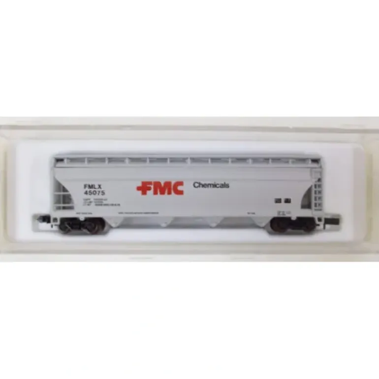 Here is an Atlas 3716 N Scale FMC Chemicals Centerflow Hopper Car #45075. This car features attractive decoration, separately applied details, accurate painting and lettering, and AccuMate couplers.