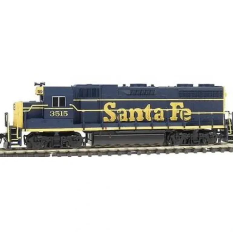 Here is an Atlas 49850 N Scale Santa Fe GP38 Diesel Locomotive #3515. Atlas’ high quality N Scale locomotive is modeled after Electro Motive Division’s 2000 horsepower GP-38 diesel introduced in the late 1960s and built through the early 1970s and is still in service today throughout North America. The GP-38 is usually identified by its two radiator fans located on top of the long hood and two small exhaust stacks. The GP-40 was produced by the Electro Motive Division in the late 1960s and early 1970s, the GP-40 was a 3000 horsepower locomotive best characterized by the three full size radiator fans on the rear of the roof. This particular model features a plastic construction, metal wheels, a powerful motor & knuckle couplers. Please check the photos for a detailed look at this item.