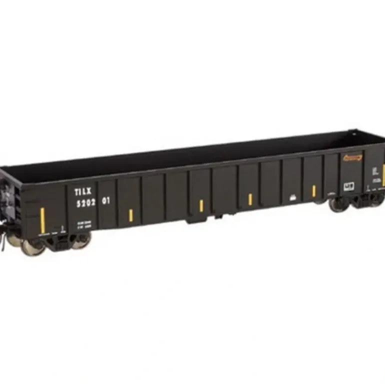 The Thrall Car 2743 cubic foot gondola was introduced in 1995. This new 52′ 6 interior length design was in response to the newly allowed increase in Gross Rail Loading (GRL) to 286,000 lbs (up from 263,000 lbs). This allowed an increase of the inside height from the previously standard 5’0 to a new standard of 5’6, giving it a 2,743 cubic foot capacity. Thrall produced over 6,700 of these from 1995 to 1999. The design resumed production under Trinityrail in 2005. Features: Prototypical scale height reflecting the new higher capacities standard. Fourteen side posts Separate ladders Detailed stirrups Accurate painting and lettering Ready-to-run