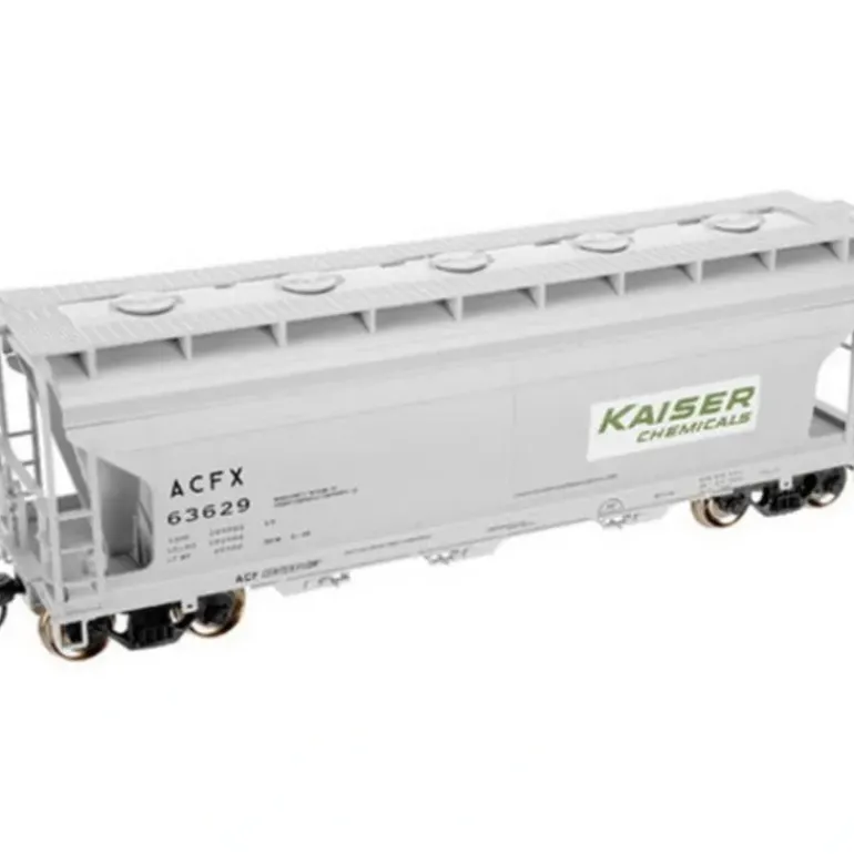 The three-compartment ACF 3560 Center Flow Covered Hopper was designed for the transport of high-density dry bulk ladings of 50 60 pounds per cubic foot. Examples these of commodities includes salt, fertilizer, starch, bauxite, and clay. The 100-ton car was designed to fit into the smallest modern plate diagram dimensions, Plate B.