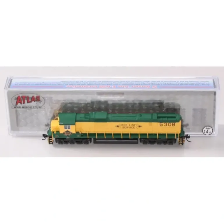 This locomotive features a scale speed motor with low friction drive, directional lighting, golden white LEDs, blackened metal wheels, factory installed AccuMate magnetic knuckle couplers, and painted safety rails.