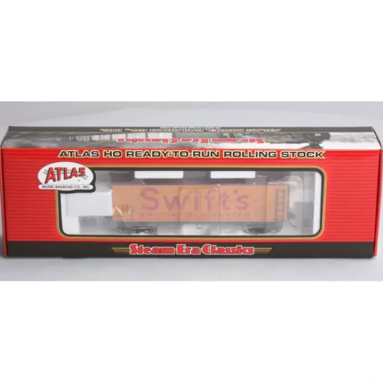 This is an Atlas 6127-1 HO Swift’s- Road 36′ Wood Reefer Car #2430. This is an HO Freight car ready-to-run rolling stock. Each Atlas HO Freight car features free-rolling trucks with blackened metal wheels, AccuMate body-mounted couplers and the most accurate painting and printing imaginable.