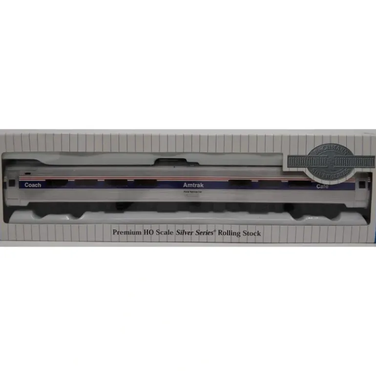 Here is a Bachmann 13112 HO Scale Amtrak Amfleet 85′ Cafe Diner Phase IV Passenger Car. Ready-to-run passenger cars feature molded plastic bodies, which are prepainted and lettered. Complete with trucks and horn-hook couplers. All cars feature lighted interiors.