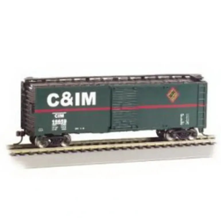 This is Bachmann 17025 HO Chicago & Illinois Midland 40′ Steel Box Car. Silver Series rolling stock features: blackened metal wheels, body mounted couplers, non-magnetic axles.