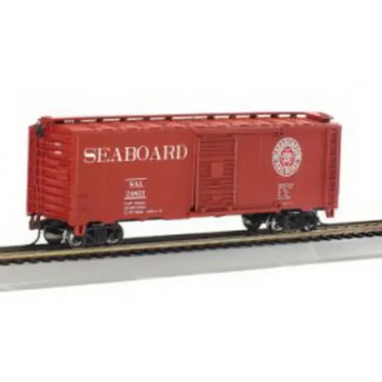 This is Bachmann 17046 HO Seaboard 40′ Steel Boxcar. Silver Series rolling stock features: blackened metal wheels, body mounted couplers, non-magnetic axles.