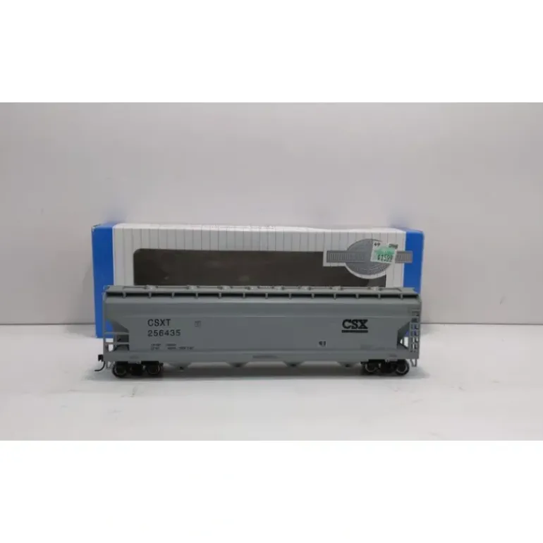 This is Bachmann 17518 HO CSX Transportation 56′ ACF Center-Flow Covered Hopper #2 Its key features are: Blackened metal wheels Body mounted couplers Non-magnetic axles.