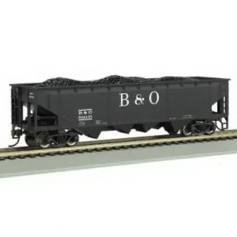 This is Bachmann 17648 HO Baltimore & Ohio 40′ Quad Hopper. Premium HO scale Silver Series Rolling Stock Blackened, machined-metal wheels with RP25 contours Magnetically operated, body mounted EZ-Mate couplers Non-magnetic, blackened-brass axles with needlepoint bearings Celcon trucks Added weight for optimum tracking B & O (large lettering) Logo.