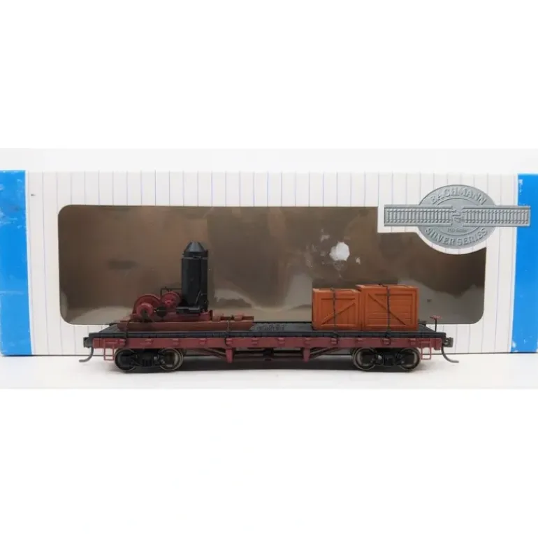 This is Bachmann 18301 HO ACF Log Car W/ Log Skidder & Crates (Non-Operating) Its key features are: Blackened metal wheels Body mounted couplers Non-magnetic axles.